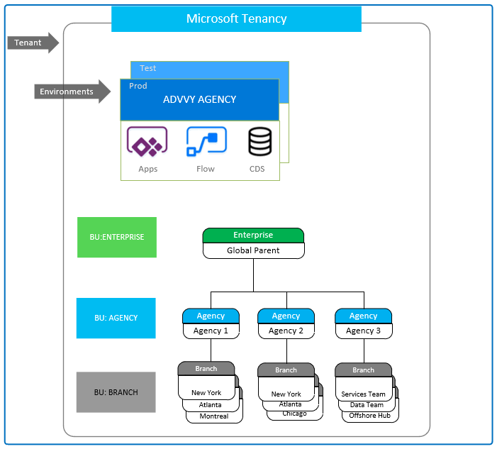 - Agency Level – Business Unit Type with an Enterprise Level Parent