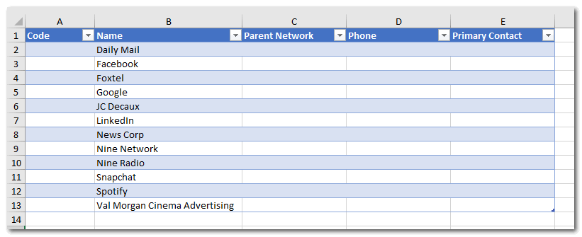- There is an order to the way Master data records are set up to ensure that lists that tie other lists are populated – for example Mediums have references to Markets, Media Types, Media Sub Types and Networks, meaning all of these other sets of data should be created first.