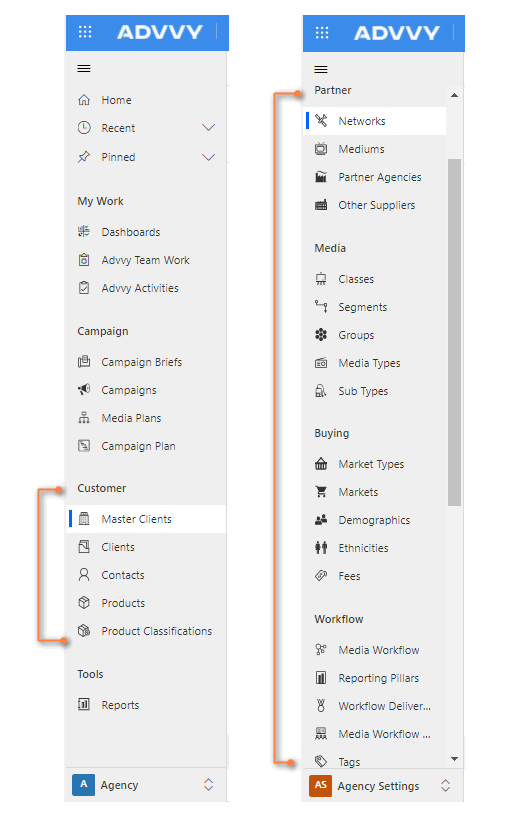 Most Master Data is managed in Agency Settings area, but there are additional master data lists managed in the main Advvy area.