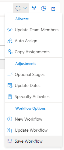 - After creating a new Workflow with Stages and Activities you can then save this as a new template from the Workflow Options menu by selecting the Save Workflow Please note a template must contain at least one stage and activity.