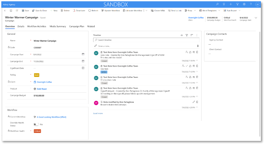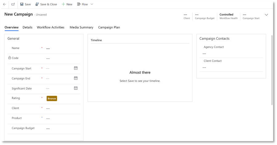 Additionally, the Activities & Notes tab, has had the Timeline grid brought forward to the Overview tab to allow teams to instantly see the latest activity on a campaign, and to be able to add notes from this tab.