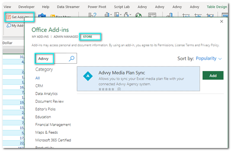 We have recently configured the Advvy Excel Add-in for Media Plan Sync to be made available in the Microsoft Office 365 store. This is to assist global client teams who may have restricted access to global add-ins being made available in office applications.