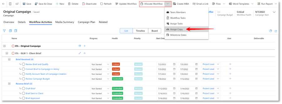 The “Assign Copy” functionality allows a user to copy the task assignments from one campaign to another. It’s a massive time saver if campaign tasks are often assigned to the same members of a team.