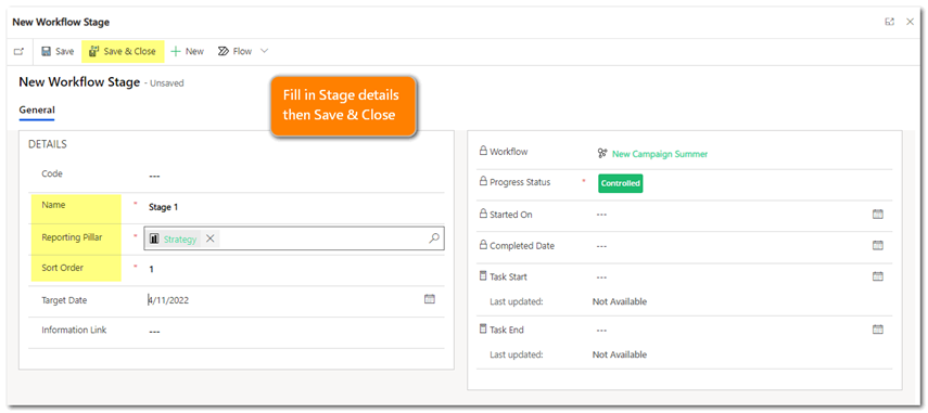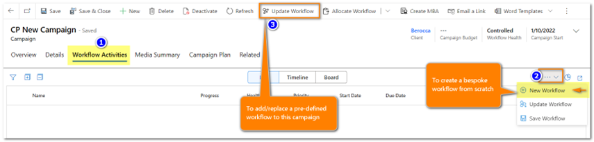 - If you opt to update workflow from the ribbon, then the campaign will be locked to the selected pre-defined workflow. You can still modify the workflow, but you cannot create one from scratch.