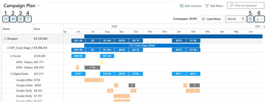 • Campaign Plan control loads only 25 campaigns at a time. You can load more through the ‘Load More’ Button at the top right of the page.