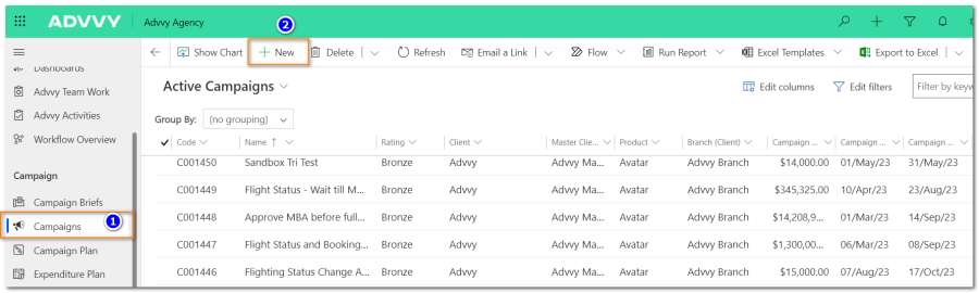 - Navigate to Agency > Campaign > Campaigns. The Active Campaigns page will be displayed.