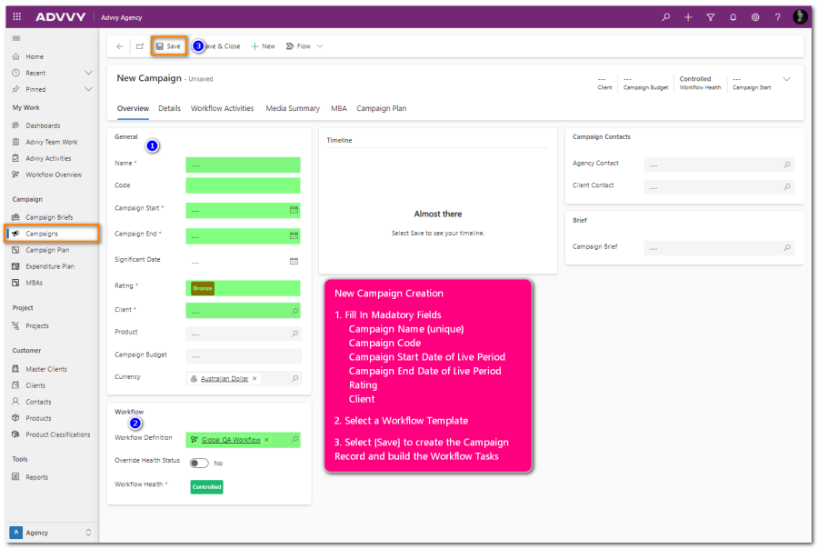 - OPTIONAL Select the Campaign Workflow from the Workflow drop down list.
