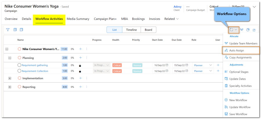 - Auto assignment needs preparation beforehand – users need to have specific Workflow ROLES added to their user profile – once this is done, within a campaign or project, the auto-assign function can be used to allocate users from the campaign team to the tasks.