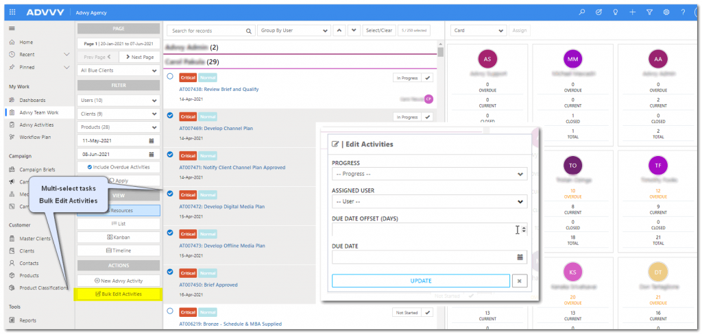 - Advvy Activities – the easiest way to see a list of all your active tasks across all campaigns – just for you!