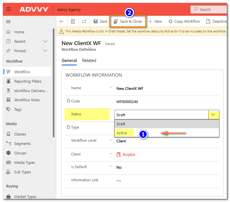 In Advvy, when you define a Workflow it will begin with a status of “Draft”.