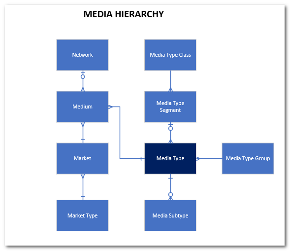 - Mediums can also include other data relationships such as Market, Market Type, Media Sub-type, Network and Language. (Optional)