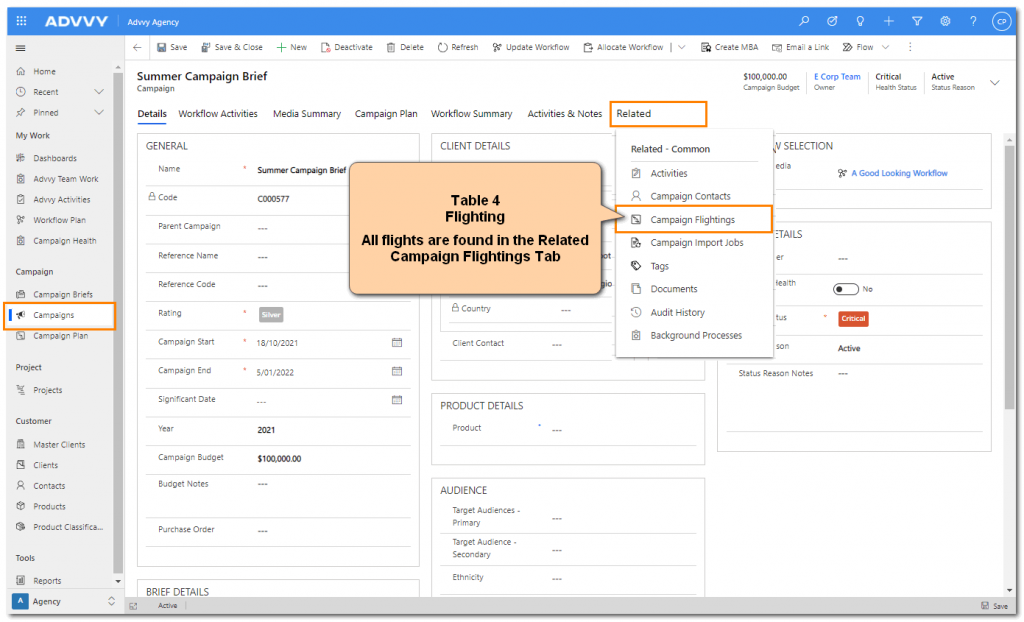These flights can be found on the Related> Campaign Flightings tab for your Advvy Campaign